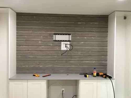 Professional cabinet installation and shiplap wall applications, delivering clean lines, durability, and modern decorative finishes.